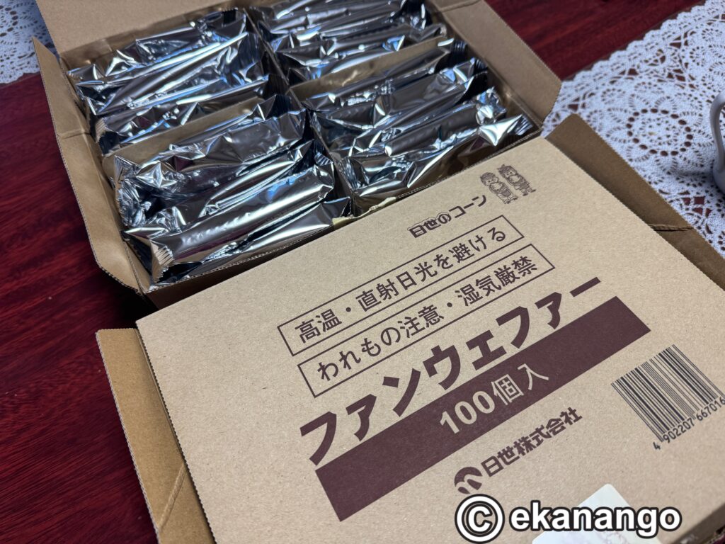 前回日本に滞在中に訪れた寿司屋「魚べい」のアイスに添えられているウェファーが、とっても美味しくてこれだけ堪能したいと購入。