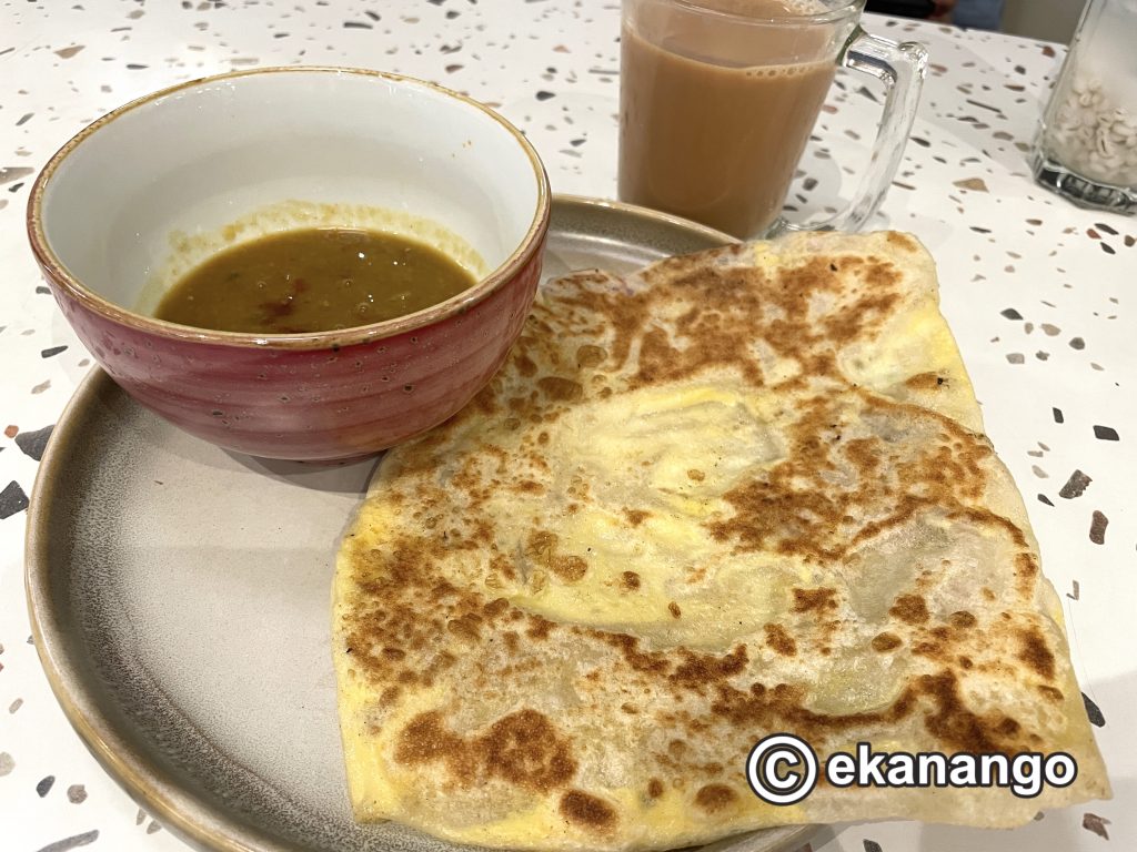 私がいつも頂くのは、テタレ(マレーシアのミルクティー)とロティ・トゥルー・バワン(卵と玉ねぎ入り薄焼きパン)。